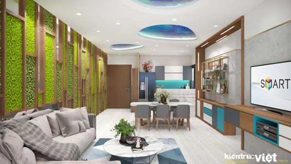 Sau đây là bản vẽ thiết kế chi tiết cho từng không gian từ phòng khách với vách ốp trang trí, trang trí phòng ăn, không gian bếp với phong cách cá tính hiện đại, dùng màu xanh cỏ khô hoặc cỏ giả kết hợp vách ốp gỗ để tạo điểm nhấn thu hút không gian sinh hoạt chung là nơi gia chủ tiếp đón khách. Điển nhấn nhẹ vách ốp trang trí ngay lối vào tách biệt không gian phòng ngủ cũng khá ấn tượng. Không gian phòng ăn và bếp được trang trí nhẹ với vách kệ trang trí kết hợp tủ đồ ăn khô. 3 Phòng ngủ với mỗi phòng một cá tính phong cách riêng theo sở thích của từng thành viên. Từ cá tính cổ điển trang trí chỉ phào đến hiện đại màu sắc tươi trẻ. Sau đây là bản vẽ nội thất cho căn hộ 3 phòng ngủ được bàn giao thô và chúng tôi thực hiện gói thiết kế tư vấn và gói thi công hoàn thiện căn hộ giao thô này kết hợp gói nội thất.