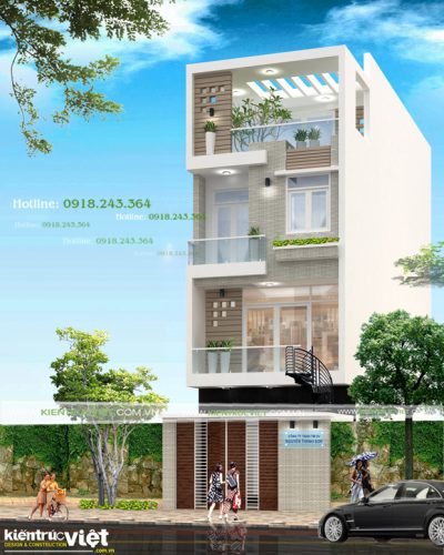 Thiết kế nhà 5 tầng góc hai mặt tiền ngang 4m TPHCM