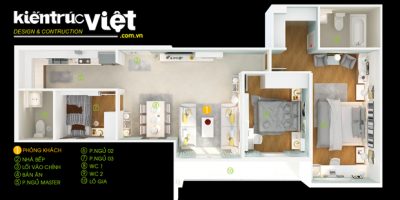 Mặt bằng bố trí căn 2 PN dự án Vinhome Central Park Bảng dự toán...