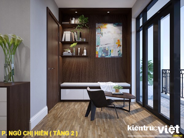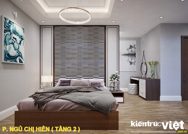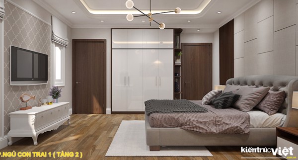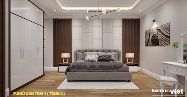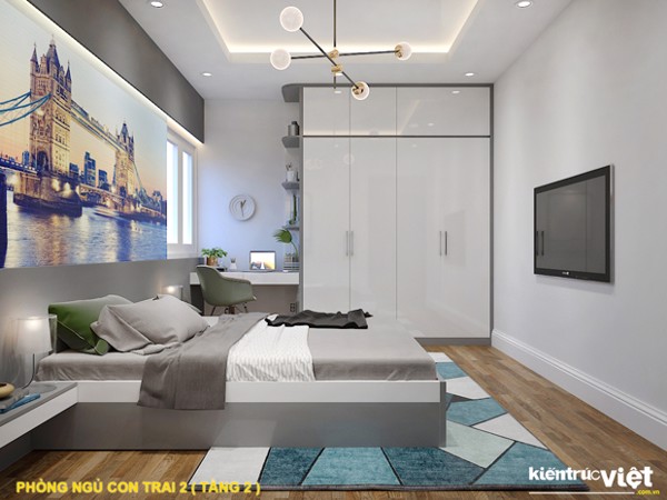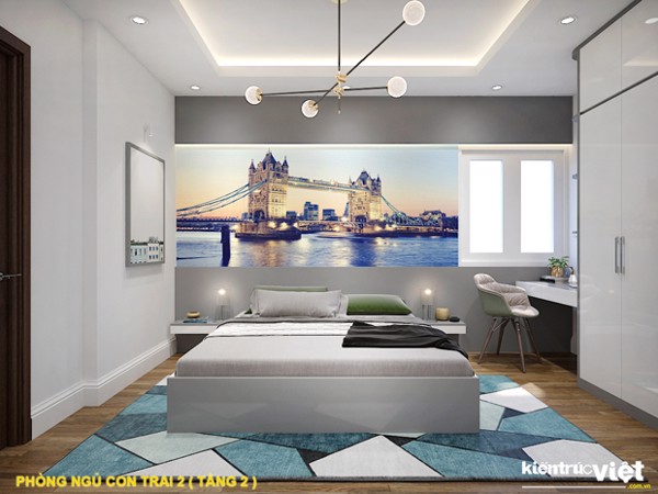 Phòng ngủ con trai view 2, Nội thất trang trí tinh tết tinh gọn, điển nhận cho trang trí vách đầu giường.