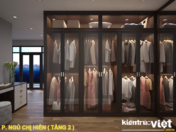 Không gian tủ quần áo bên trong phòng ngủ master.