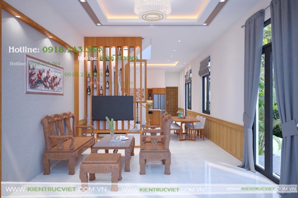 Nhằm tạo nên một không gian nội thất đẹp ấm cúng lại tiện sinh hoạt cho gia chủ, chúng tôi đã vẽ nên một bản thiết kế phòng khách nhà phố Thủ Đức đẹp dựa trên mong muốn của chủ nhà như thế này. Không gian phòng khách thiết kế theo phong cách hiện đại với sự tối giản các chi tiết trang trí không cần thiết, tập trung thể hiện những chi tiết đơn giản và ấn tượng nhất có lẽ là chất liệu gỗ tự nhiên sang trọng và thực sự đẳng cấp.