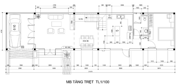 Mặt bằng thiết kế tầng trệt và lầu 1 nhà phố