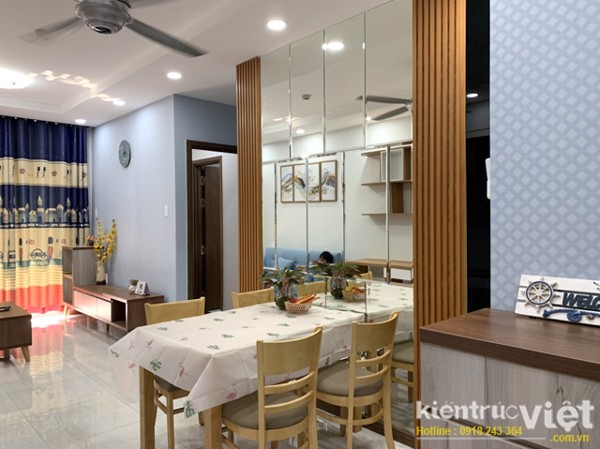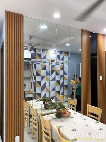 Trang trí phòng ăn liên thông không gian phòng khách và góc học tập cho các cô chủ nhỏ. Lam gỗ và kính điểm nhấn nhẹ cho cả không gian thêm rộng,sáng và thoáng hơn. Nghệ thuất và trang trí từ kính thì không ai chê được vì nó thật sự có nhiều hiệu quả trong quá trình sử dụng. Kết hợp vừa làm thoáng không gian vừa tạo điểm nhất chokhông gian bớt nhàm chán từ những bức tường thô cồng kềnh. Chi phí dao động khoảng 4tr/m2 cho cả vật tư và nhân công thi công.https://kientrucviet.com.vn/blogs/thi-cong-noi-that/thiet-ke-va-hoan-thien-noi-that-can-ho-flora-novia-75m2