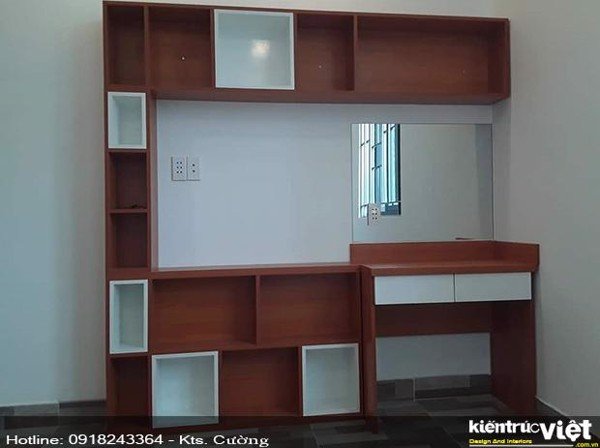2. Thi công kệ tivi kết hợp bàn trang điểm.