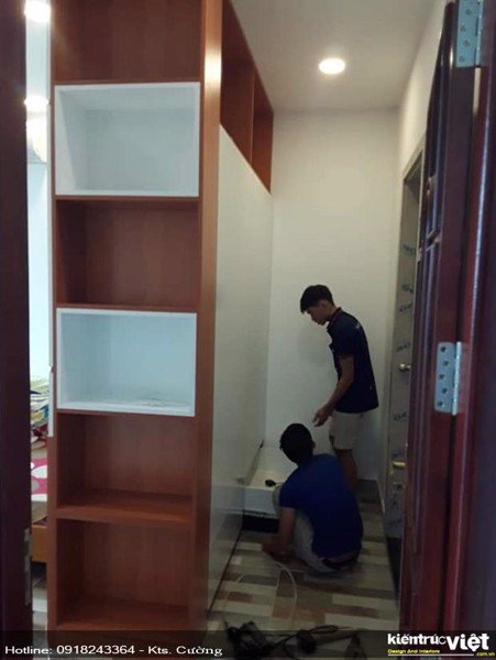 Thợ thi công của Kiến Trúc Việt đang hoàn thiện tủ quần áo