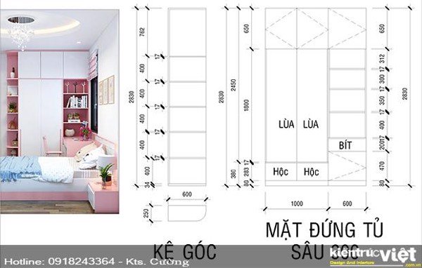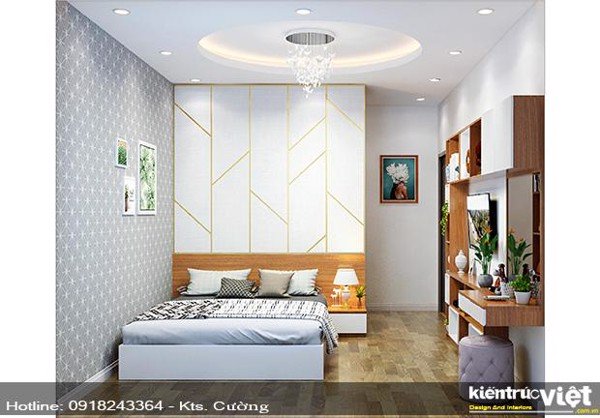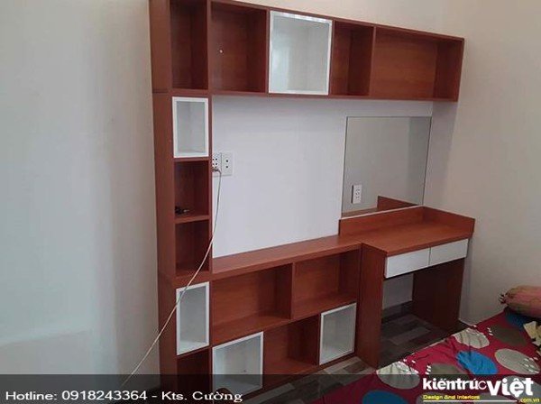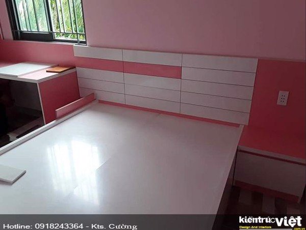 Công trình thiết kế thi công nội thất phòng ngủ cho ngôi nhà được cải tạo tại quận 10, HCM. Ngôi nhà nhỏ được gia chủ đầu tư cải tạo lại với mong muốn đem lại một không gian mới cho vợ và các con của mình. Gói thi công nội thất phòng ngủ giao động từ 20 triệu đến 30 triệu với đầy đủ các tủ kệ cần có cho một không gian ngủ nghỉ và học tập tại phòng. Diện tích mỗi căn phòng ngủ 16m2 với nhu cầu bố trí trang trí lại tường, sàn và hệ thống tủ kệ như tủ kệ tivi, tủ quần áo kết hợp tủ kho, giường ngủ thông minh với hộc chứa đồ bên dưới. Đối với gói nội thất phòng ngủ con gái thì thêm bàn học tập cho hai con và kệ sách kết hợp hệ tủ quần áo. Sau thời gian tìm hiểu các đơn vị thi công, gia chủ cũng đã chọn Kiến Trúc Việt làm đơn vị đồng hành với vai trò thiết kế nội thất cho hai phòng ngủ gồm nội thất phòng ngủ cho ba mẹ và thiết kế nội thất cho phòng ngủ hai con gái của mình. Trọn cà gói thi công nội thất cho không gian phòng ngủ bố mạ và phòng ngủ hai cô con gái giao động từ 45 triệu đến 55 triệu.