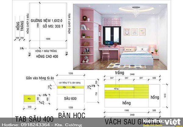 Gòi thi công nội thất phòng ngủ baby gái bao gồm