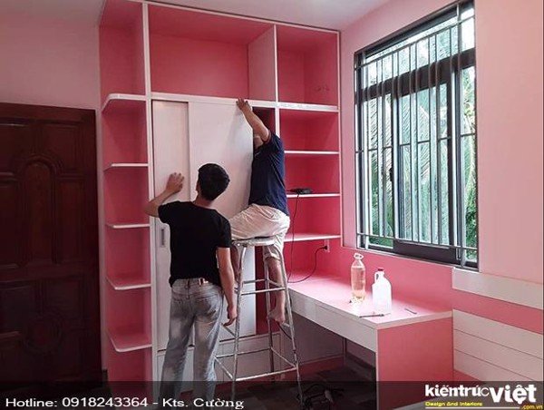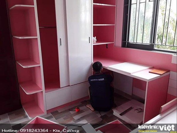 Công tác thợ hoàn thiện Tủ quần áo liên kết với bàn học cho bé