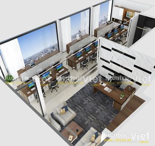 Với người thiết kế quan trọng nhất vẫn là tổ chức không gian sao cho hợp lý, thuận tiện trong quá trình vận hạnh an ninh cho đến tổ chức không gian riêng cho thuê phải đạt được diện tích tối ưu nhưng vẫn đảm bảo về mật độ xây dựng cũng như tiêu chí chung và riêng cho từng không gian của mỗi doanh nghiệp.Không gian các phòng ốc được bố trí lấy sang tự nhiên qua những ô kính cửa cường lực an toàn.