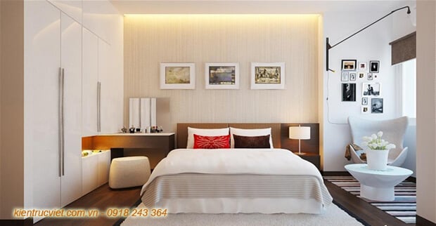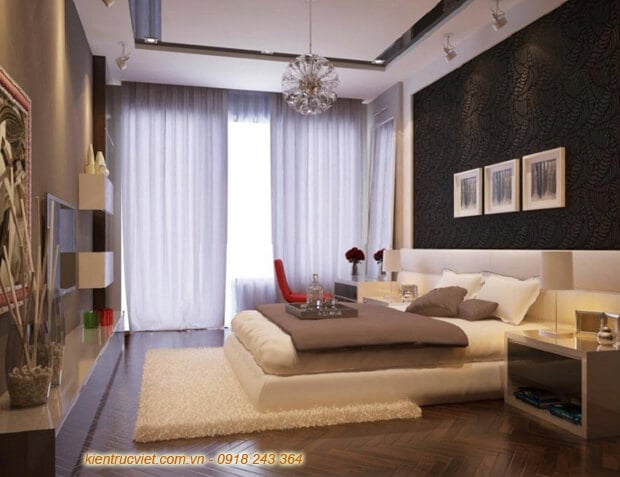 Nhấn trần tường thạch cao hắt sáng để trang trí cho phòng ngủ thêm ấm áp