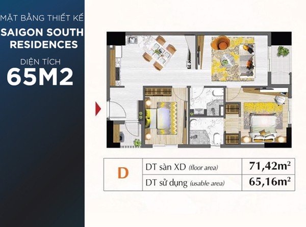 ???̣̂? ??́?? ??̆? ??̣̂: 65m2 – 2 phòng ngủ