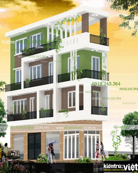 Kiến trúc nhà 4 tầng 10×16 2 mặt tiền ngay gốc với hai mặt tiền, nhà nở hậu mặt trước 4m và mở ra sân sau gân 10m dài nhà 16m. Với không gian nhà có được lợi thế ngang khá rộng, không gian được chia làm hai phần, một để ở và một phần làm kinh doanh cho thuêmặt trước, vẫn đảm bảo lối đi riêng tác biệt không gian. Màu sắc xanh tươi trẻ theo mong muốn và sở thích gia chủ.