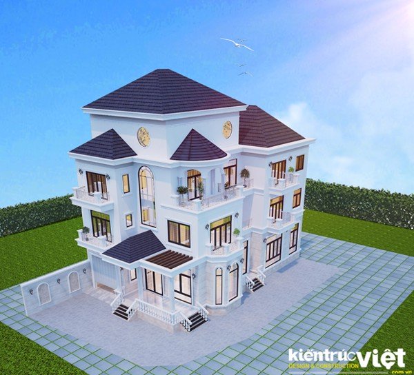 Quy mô xây dựng: Biệt thực cao cấp 1 trệt 2 lầu mái ngói bánh ú.