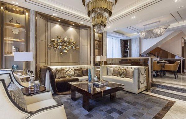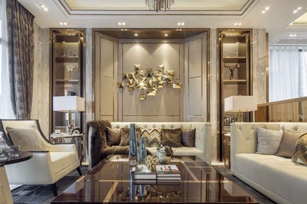 Thiết kế biệt thự phố 200m2 – Phòng sinh hoạt chung tiếp khách tầng trệt.