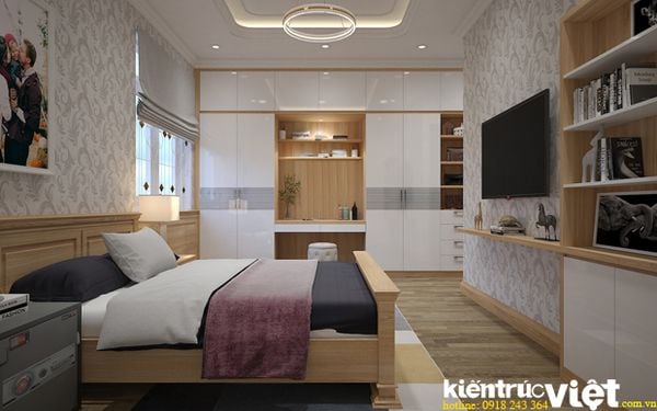 Phòng ngủ master lầu 1 – Hệ thống kệ tủ quần áo được trang trí tinh tế.