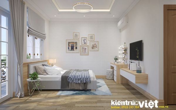 View 3 nội thất không gian phòng ngủ của cô chủ với màu trắng chủ đạo.