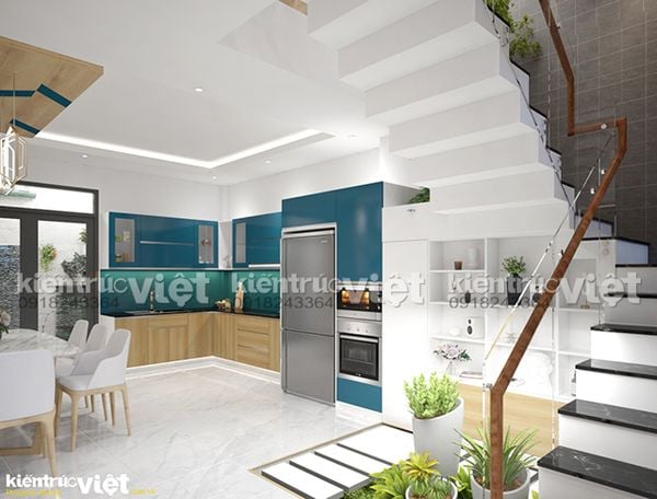 Nội thất không gian bếp và phòng ăn cho nhà ống 4 tầng.