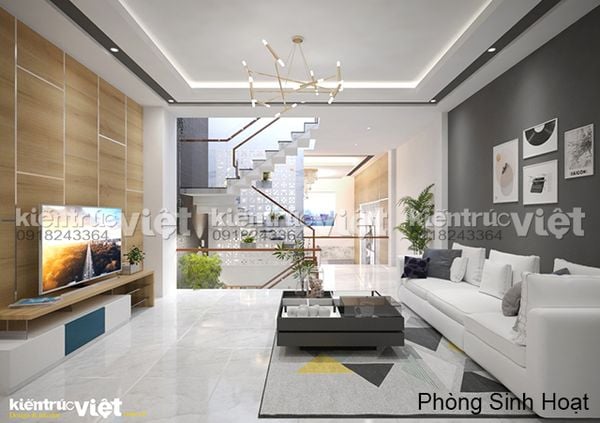 nội thất không gian phòng khách cho nhà ống 4 tầng ngang 4,5m đài 16m