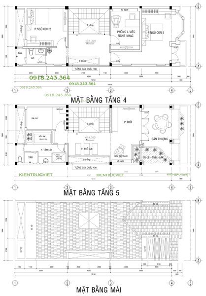 Hình ảnh mặt bằng thiết kế  nhà phố 5 tầng ngang 5m