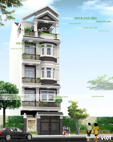 Hình ảnh phối cảnh thiết kế ngoại thất căn nhà phố 5 tầng