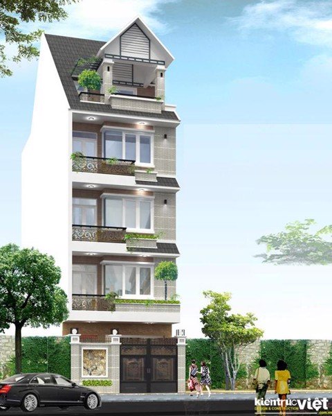 Mẫu nhà ống 5 tầng -Nhà phố 1 trệt 3 lầu và 1 sân thượng